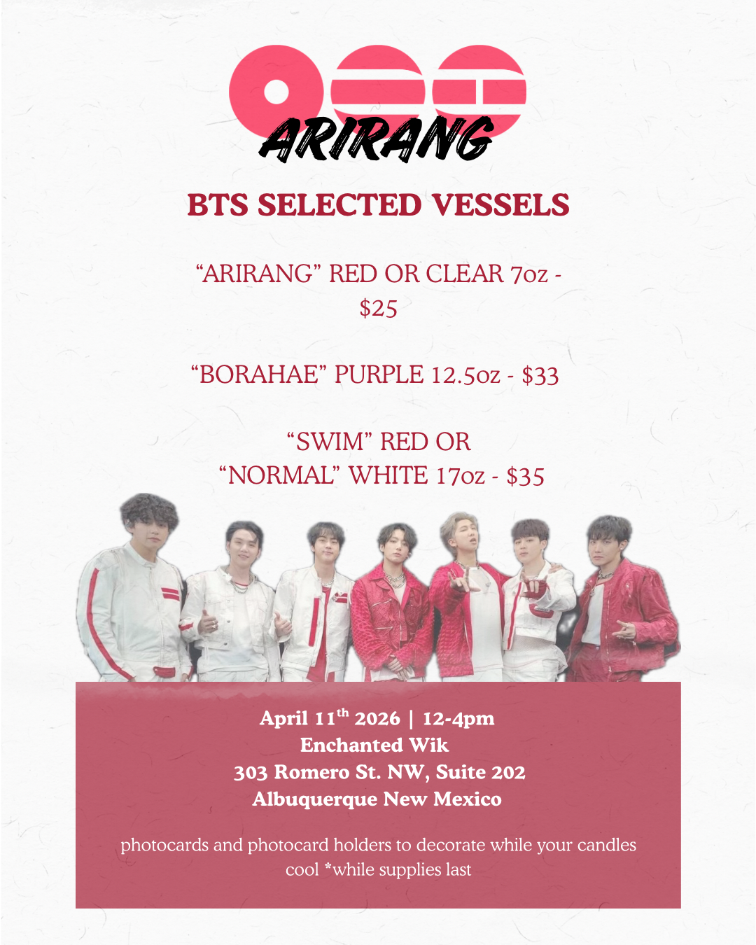 Join us for the BTS Watch Party on April 11th, from 12-4 PM. Secure your spot by RSVP and select your preferred vessel upon arrival. Pricing ranges from $25 to $35. Engage with the BTS ARMY in a collective viewing experience, fostering community and shared enthusiasm for the comeback.